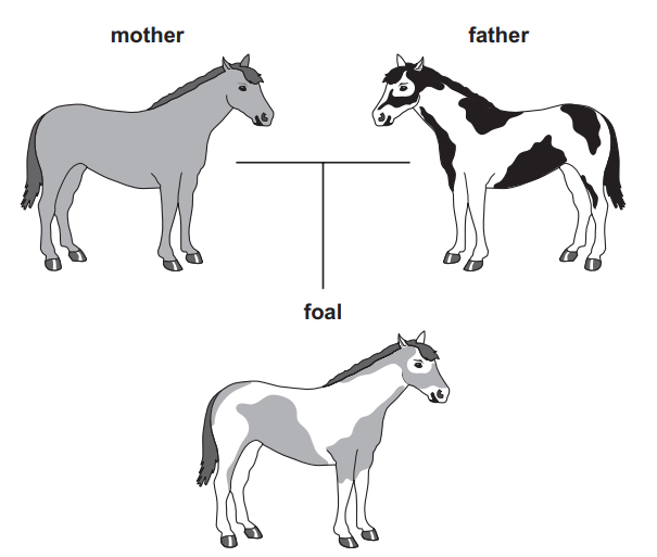 The diagram shows two parent horses and their foal.