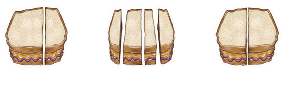 Jasmine a coupé son sandwich en 2 parties égales. Quel sandwich appartient à Jasmine?