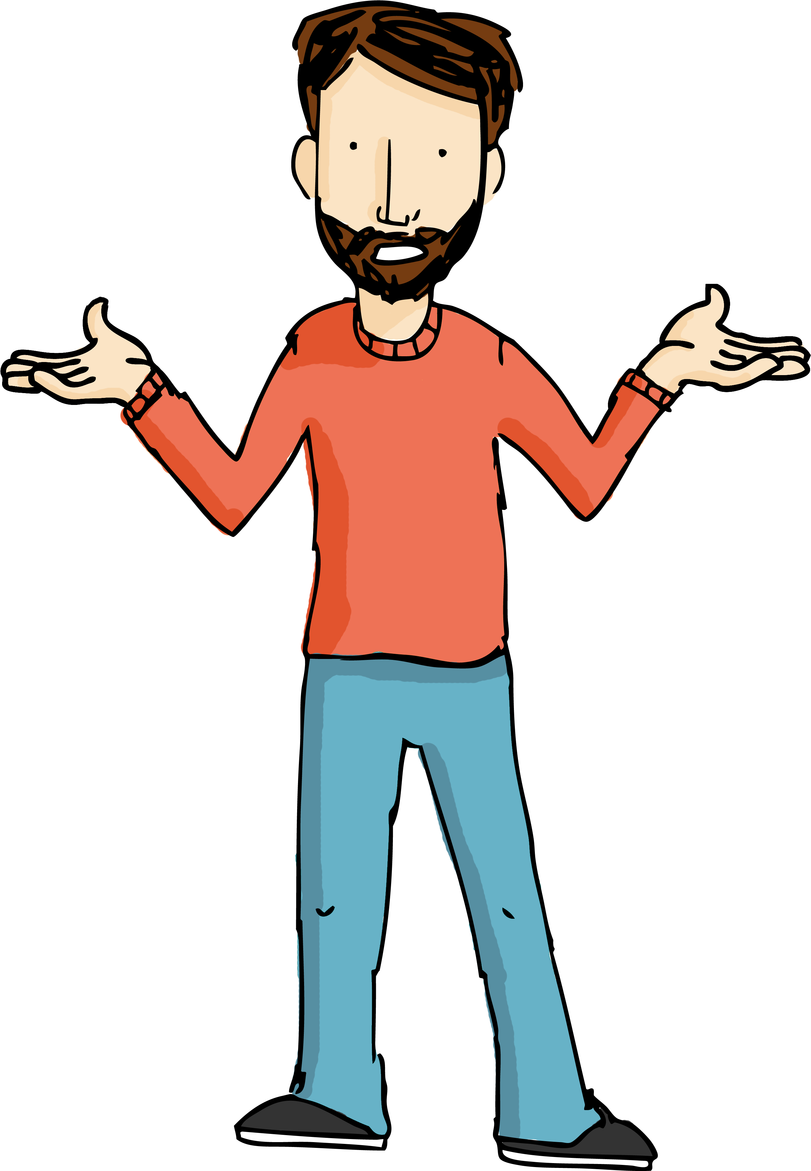 She has short curly hair. She is wearing a T-shirt, a skirt, and glasses.