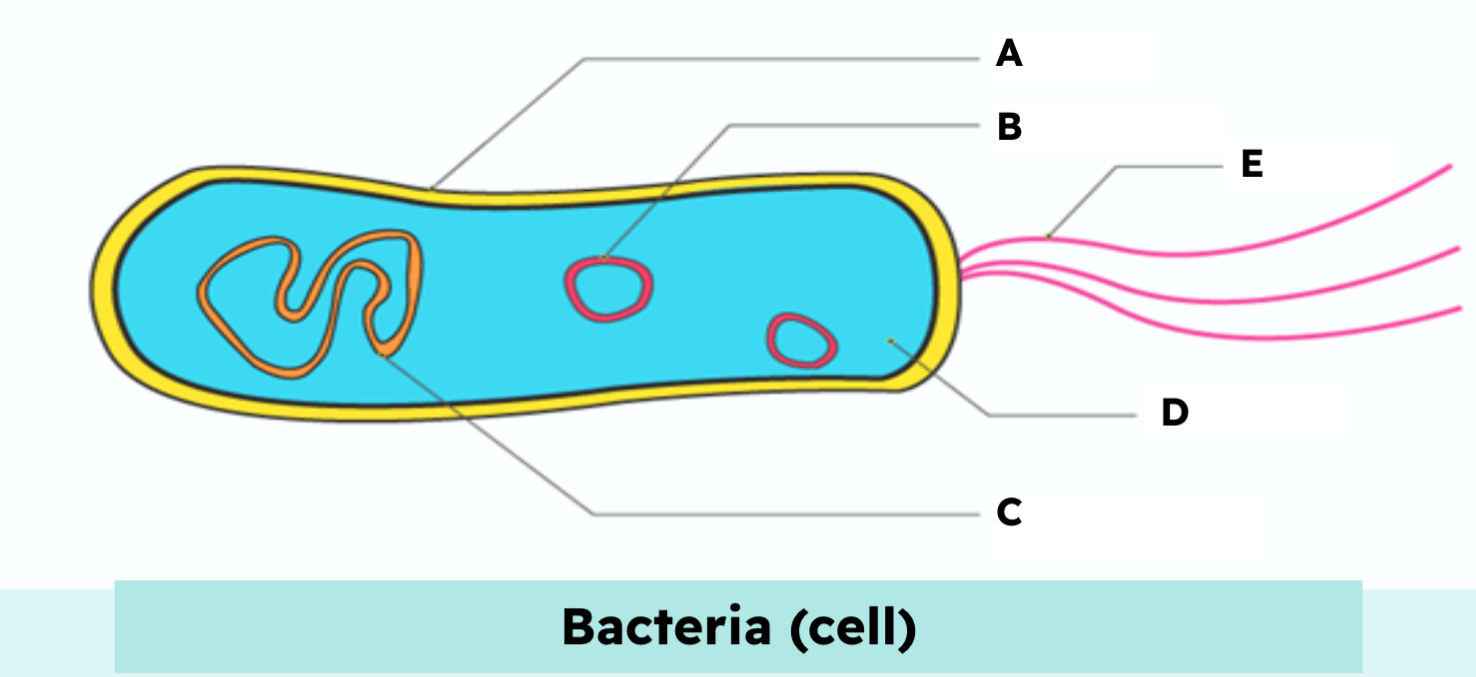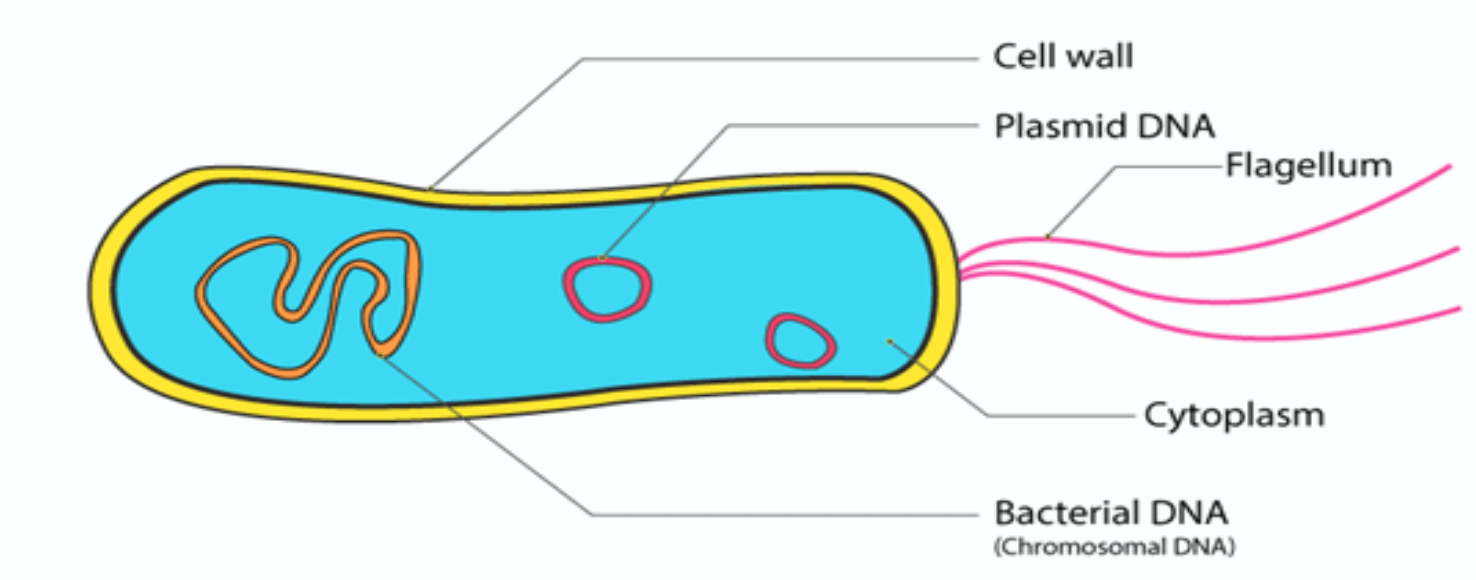 Plasmid DNA, Cell Wall, Flagellum, Cytoplasm, Bacterial DNA