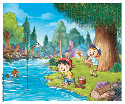 The 3 ________ (woman) took the 5 ________ (child) to the river. One ______ (child) caught 3 ______ (fish). They saw 8 _______ (deer) and some _______ (duck)