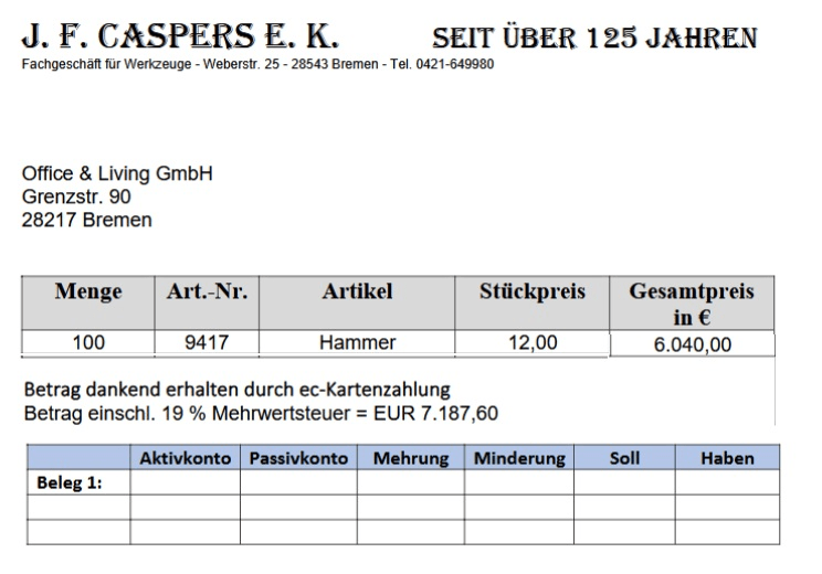 Bank - Minderung 7.187,60 im HABEN