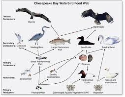 The picture below shows the energy flow through a Chesapeake Waterbird Food Web.