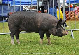This swine breed looks like an oreo. It is known for its black body and white band around the middle covering the legs.