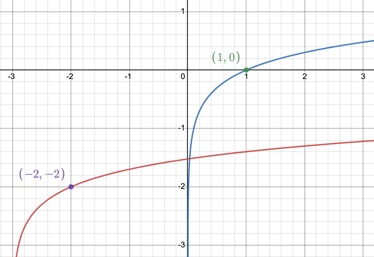 The blue graph is f(x)=log(x). Identify the translations of the red graph.