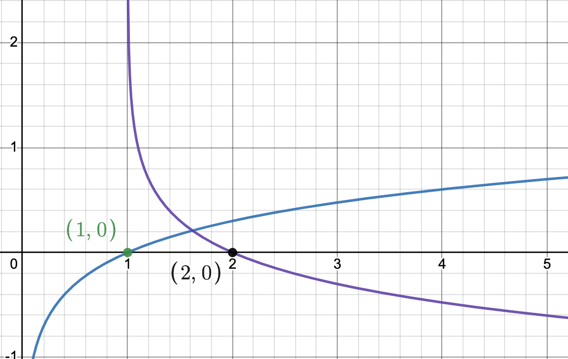 The blue graph is f(x)=log(x). Identify the function of the purple graph.