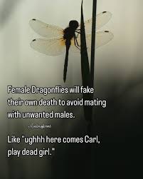 a) Eats them  b) Buzzes her wings  c) Plays dead