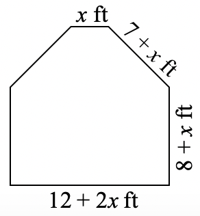 The perimeter of the hexagon shown is 56 feet. Find the length that is labeled x.