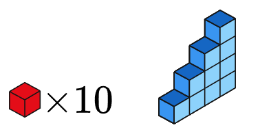 Tio kuber målas röda och sätts ihop till en trappa enlig bilden. Trappan målas blå på varje synlig yta (toppen, fram, bak och båda sidorna men inte botten) Hur många sidor är fortfarande röda?