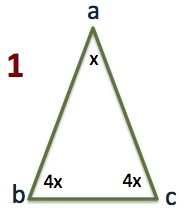 ¿Cuánto miden los tres ángulos en el triángulo de la imagen?