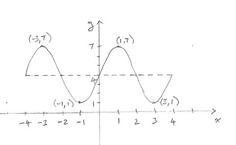 f(x)=4+3cos(pi/2(x-1))