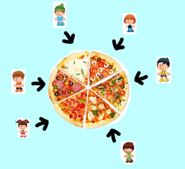¿En cuántas partes repartirías una pizza, si tienes 5 amigos, y cuanto les toca a cada quien?