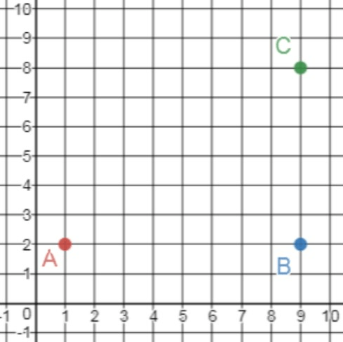 Given the following points A(1,2), B(9,2), and C(9,8), find the length of AC.