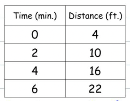 The table shows the relationship between time in minutes (x) and Distance in feet (y). Is this relationship proportional?