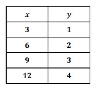 Write the proportional equation given the table of values: