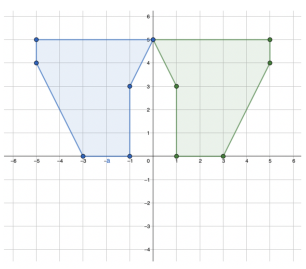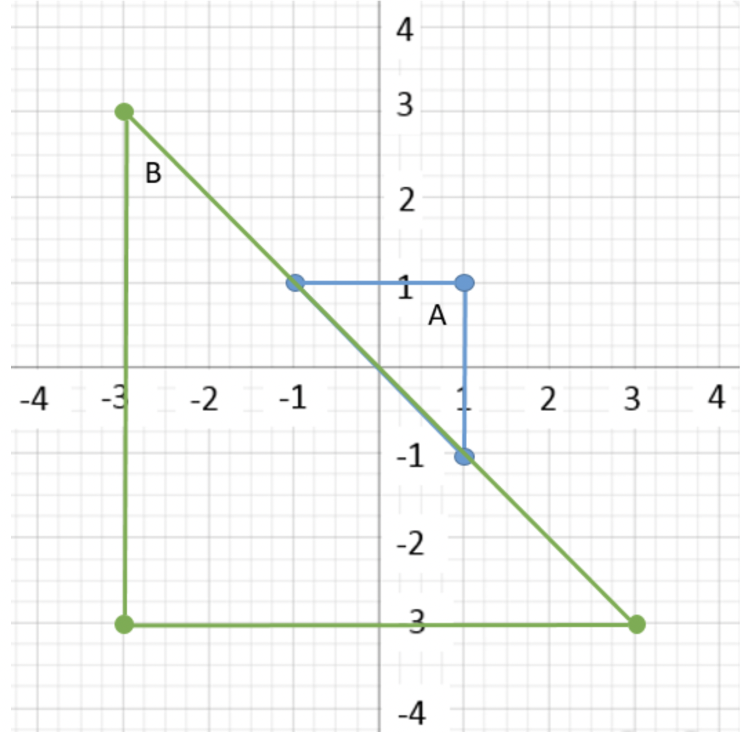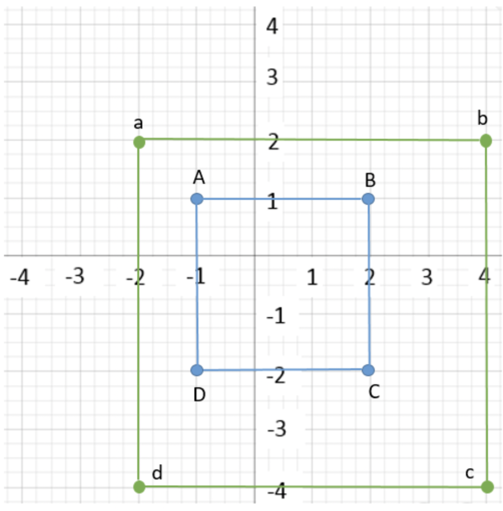 The green figure is the result of a transformation of the blue figure. Which transformation would accomplish this?