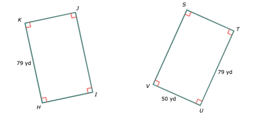 How many yards would side length HI need to be to make the following rectangles congruent?