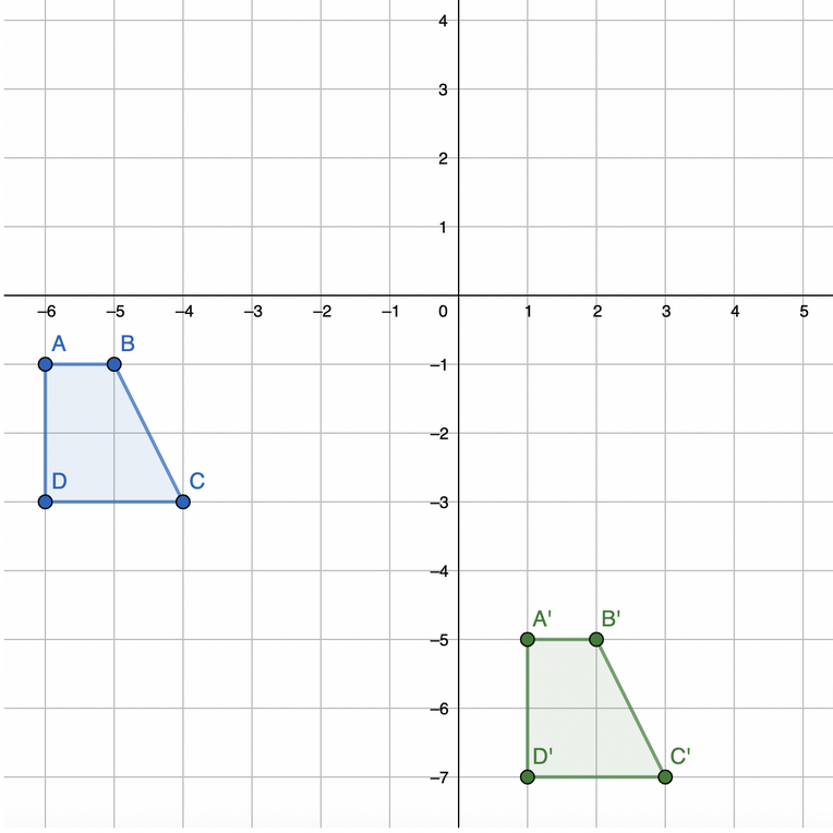 Parallelogram A’B’C’D’ is a translation of parallelogram ABCD. Which rule correctly describes the translation that happened?