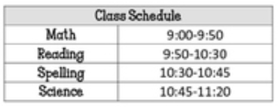 Below is my niece's schedule. Which subject does she have the longest? (Hint: There may be more than one answer)