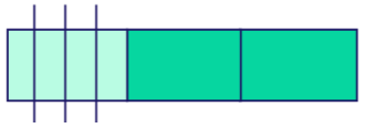 There was 1/3 of the cake left over from the party. The next day it was shared among 4 friends. Using the model below, determine the fraction of the whole cake that each person ate.