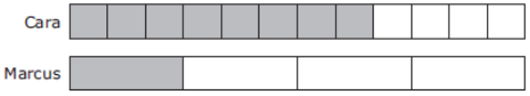 Cara and Marcus shared a candy bar. The models are shaded to show the fraction of the candy bar each of them ate.