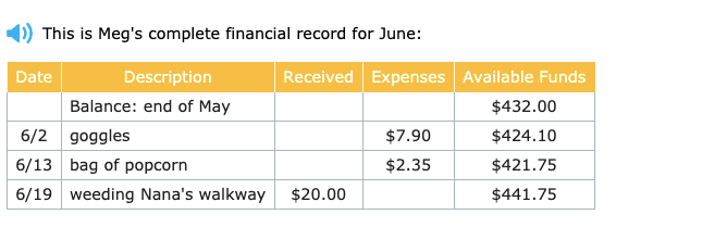 Meg spent $10.25 in June