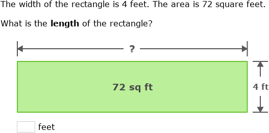 A room has an area of 24 square feet. The width is 6 feet. What is the length of the room?