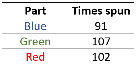 Based on this data, what is the estimated probability of the spinner landing on red?