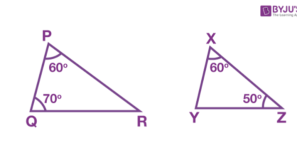 Yes they are.  Both Triangles have Angles that are 60, 50, and 70.
