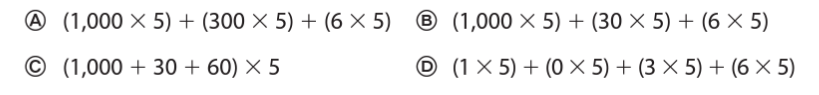 The marching band sells 1,036 shirts as a fundraiser. Each shirt sells for $5. Which expression can be used to find the total amount of sales in dollars?