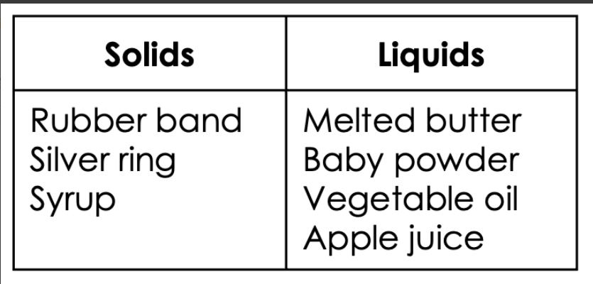 Which two items could be classified as a solid?