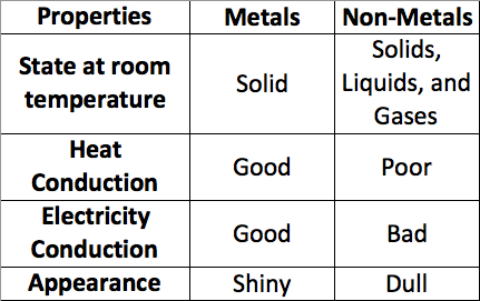 A table comparing some physical properties of metals and nonmetals is provided. A student examined four samples of matter and recorded some of their properties. Which of the following is most likely a non-metal?