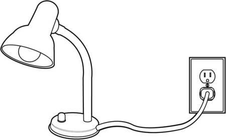 The illustration shows a lamp plugged into an outlet. When the lamp is turned on and the bulb is lit, the circuit demonstrates which of the following?