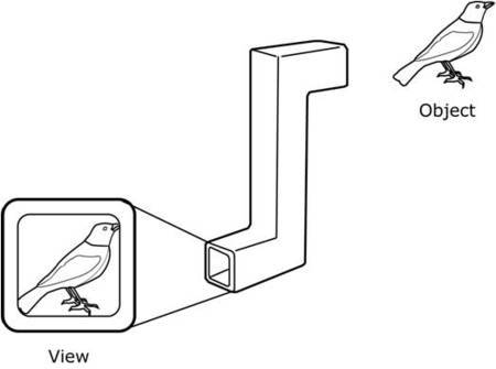 The diagram shows a periscope used to see objects that are behind or under a barrier. What makes it possible to see an object when looking through a periscope? The periscope –