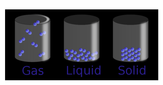 Draw a diagram of the molecules found in a solid, liquid and a gas.