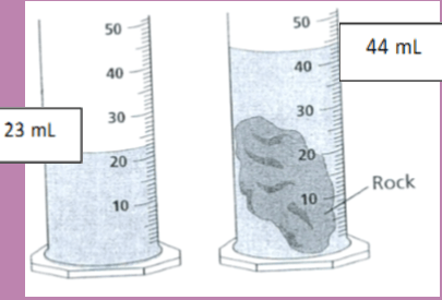 The diagram below shows one way to measure the volume of an irregular object. What is the volume of the rock sample?