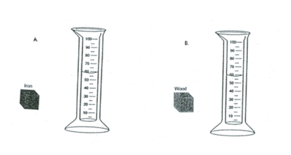 THE WATER LEVEL IN EACH SHOULD RISE THE SAME SINCE THEY BOTH HAVE THE SAME VOLUME. (#15 on study guide)