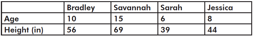 Tommy is 12 years old, and his height is 66 in. According to the table below, whose age and height are proportional to Tommy’s?