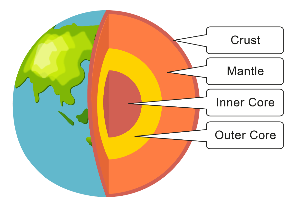 The outer most layer of Earth is called the _____, while the innermost layer is known as the ______.