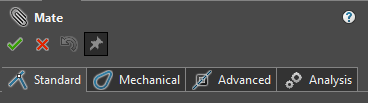 Symmetric mate is found under this tab of the mate dialog box. Choices shown below.