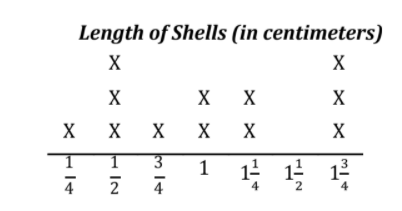 What is the combined length of all the shells that measured 1 3/4 cm?