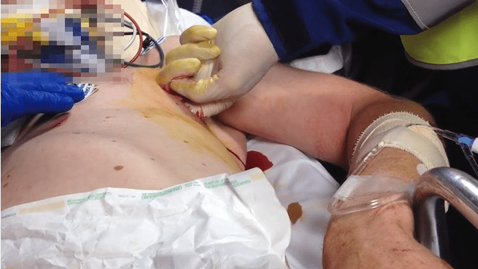 Rats!  My traumatic arrest patient has a tension pneumothorax and we just ran out of chest tubes!  I'll save him by performing this!