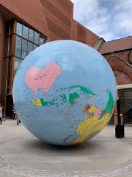 This upside-down statue is a landmark icon of Xueh Wei and Melinda's future university.