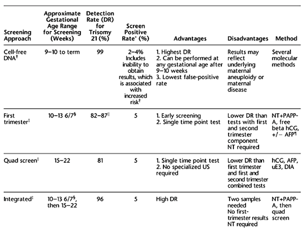 First trimester screen: NT + PaPP-A, bHCG, AFP