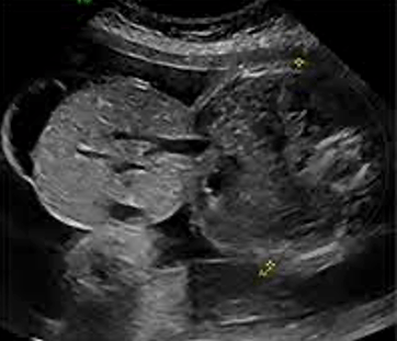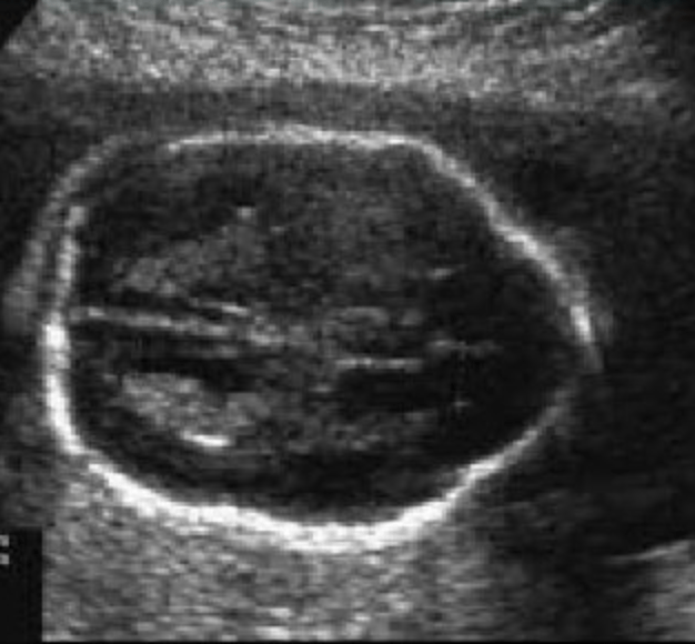 Ultrasound: intracranial calcifications, ventriculomegaly, microcephaly, hepatosplenomegaly