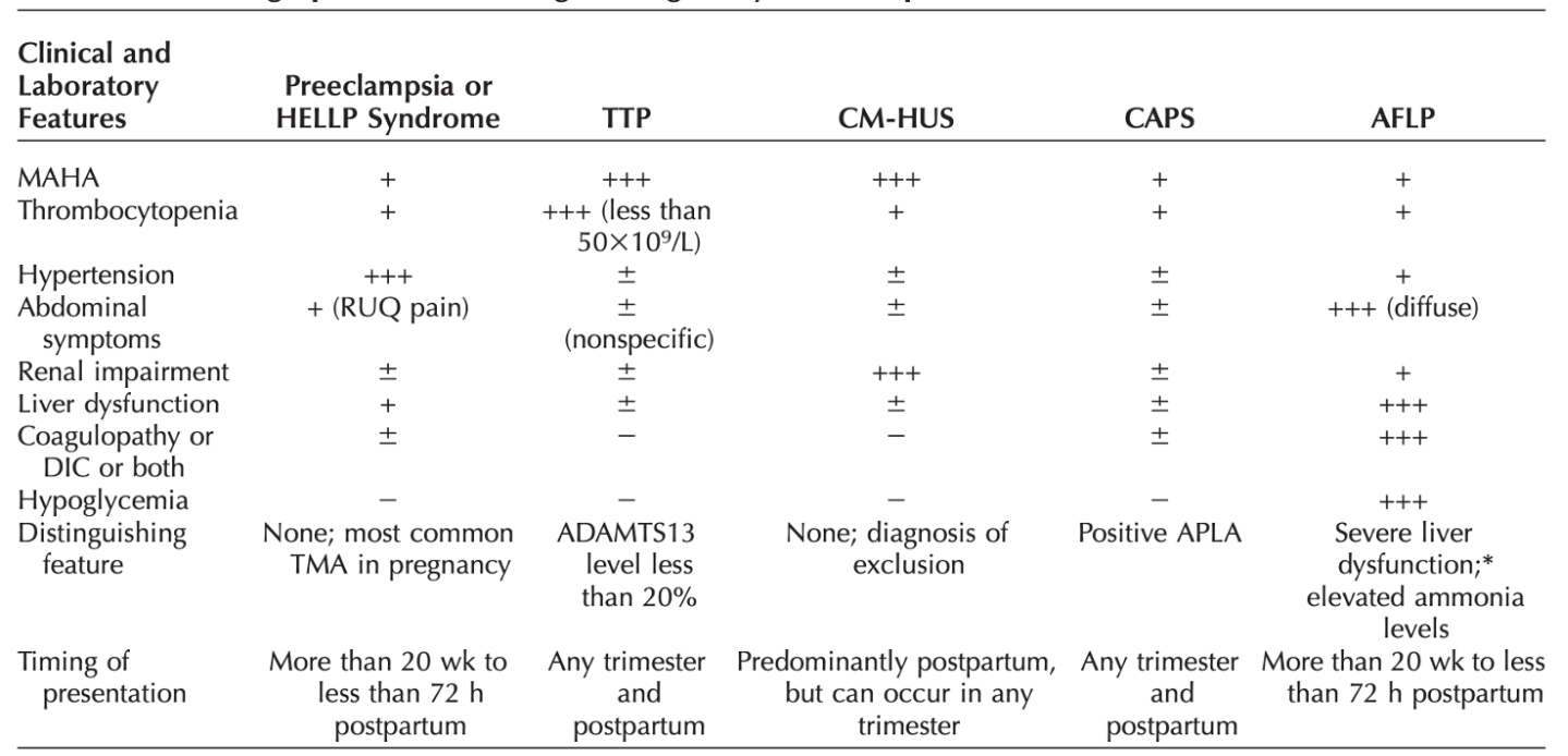 TMA with thrombocytopenia and significant renal involvement. Complement or e.coli shiga toxin mediated. Dx of exclusion and need to differentiate between other TMA (TTP, PreE/HELLP, AFLP)