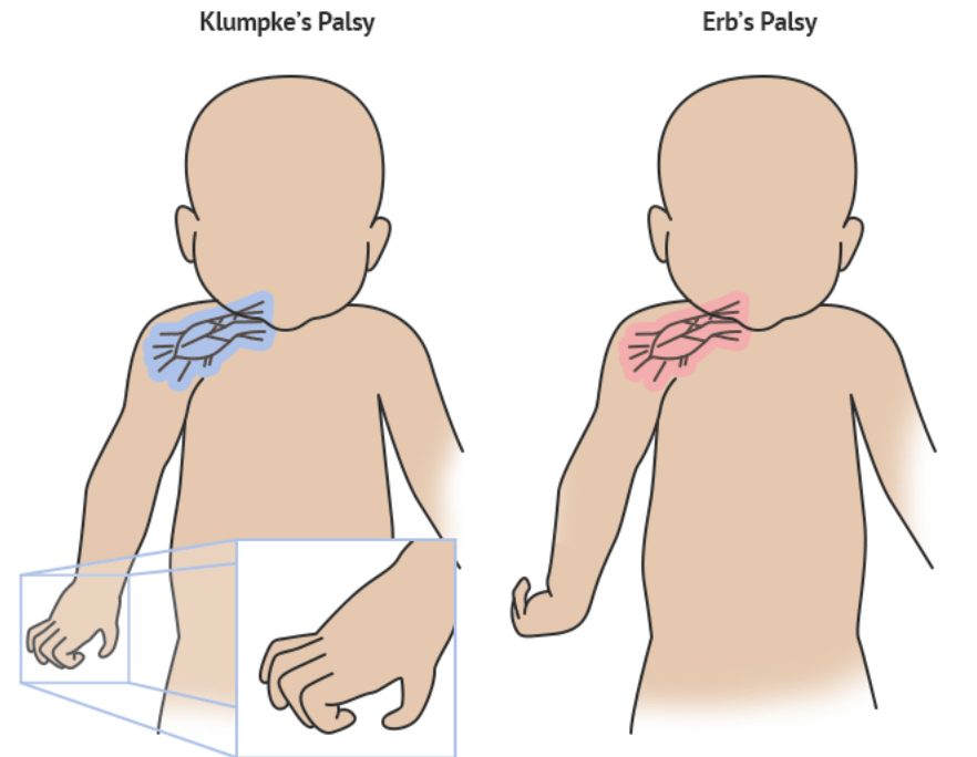 Erb's Palsy (C5-C6): medial rotation, forearm pronated and extended