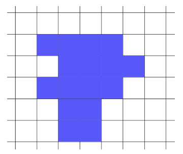 Find the perimeter of the shaded region shown, where each square has a length of 1 unit.