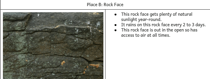 The Rock Face is a better environment because there is constant sunlight year-round, 2-3 days of rain, and it is in an open system.