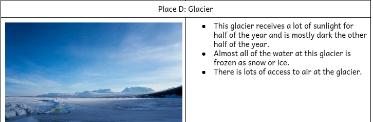 Explain why the Rock Face is a better environment for plant growth vs the Glacier.